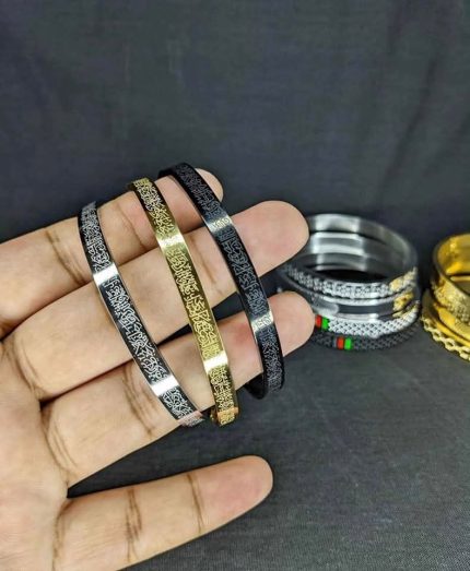 Crafted in a rectangular bar shape, it features intricate Arabic engraving that reflects devotion, strength, and style.